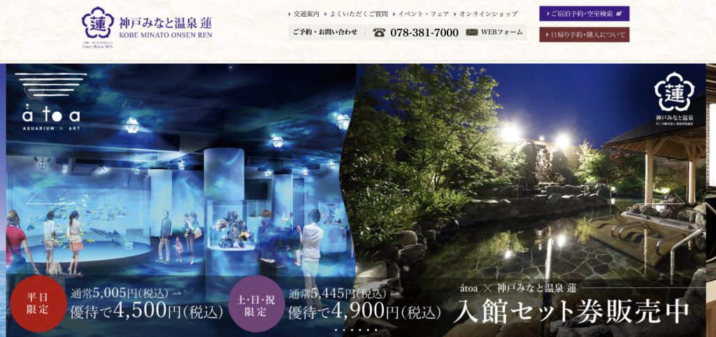 みなと温泉蓮は、三宮駅からシャトルバスが出ており非常にアクセスがしやすいです。